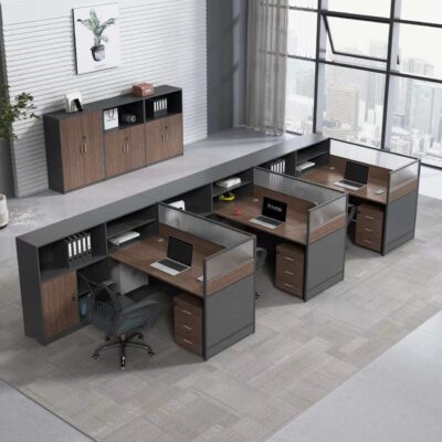 Bàn làm việc màn hình nhân viên tối giản hiện đại Bàn ghế kết hợp bàn nhân viên tài chính với vách ngăn tủ bên bàn máy tính