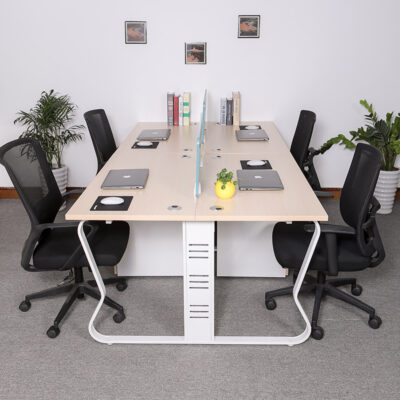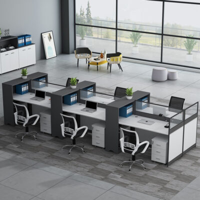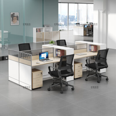 Đơn giản hiện đại màu trắng nhân viên tài chính bàn máy tính phân vùng góc màn hình bốn người bàn nhân viên bán buôn