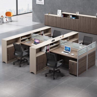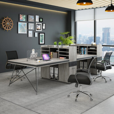 Bàn nhân viên tài chính Ghế 4 người cạnh nhau Bàn màn hình đôi 2 bàn nhân viên nhân văn và ghế kết hợp