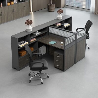 Vách ngăn kết hợp bàn tài chính và ghế kiểu chữ L bàn nhân viên nhiều người kiểu chữ F kết hợp nội thất văn phòng