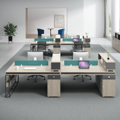 Bàn nhân viên hiện đại tối giản màn hình vách ngăn chỗ ngồi bốn hoặc sáu nhân viên kết hợp bàn ghế văn phòng
