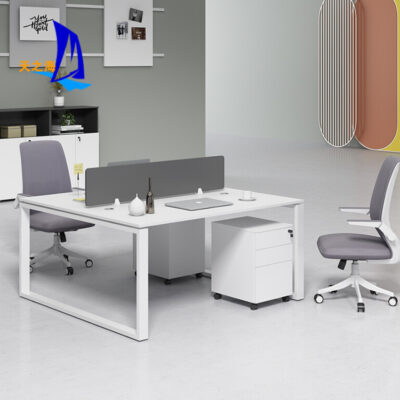 Bàn ghế văn phòng khung thép đôi màu trắng kết hợp màn hình Phòng làm việc Bàn nhân viên Bắc Kinh hiện đại đơn giản