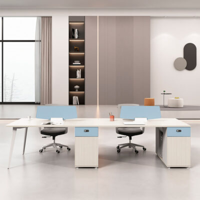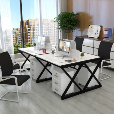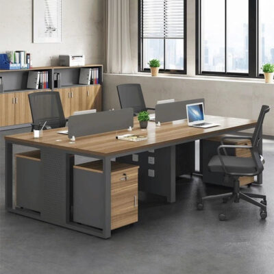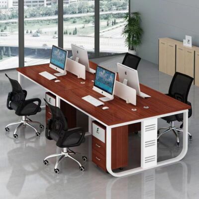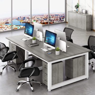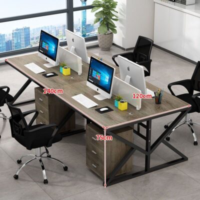 Bàn nhân viên tài chính Ghế 4 người cạnh nhau Bàn màn hình đôi 2 bàn nhân viên nhân văn và ghế kết hợp