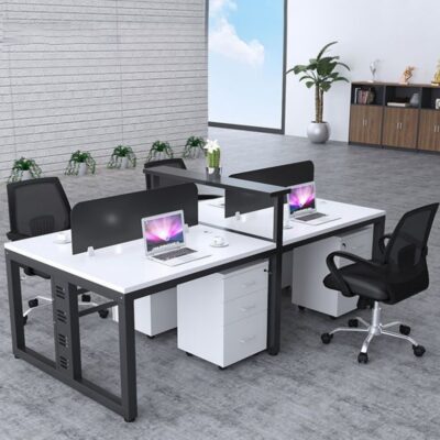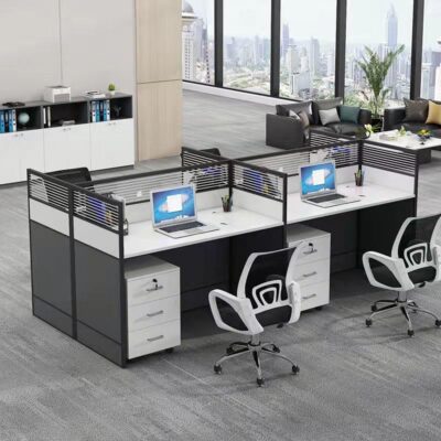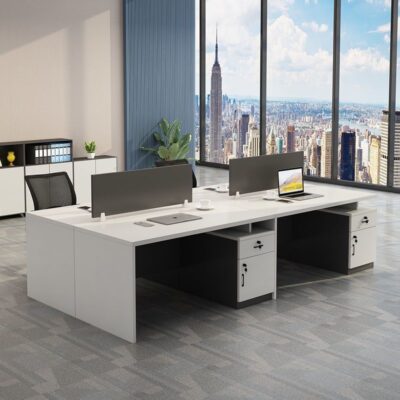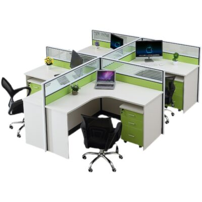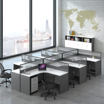 Đơn giản hiện đại màu trắng nhân viên tài chính bàn máy tính phân vùng góc màn hình bốn người bàn nhân viên bán buôn