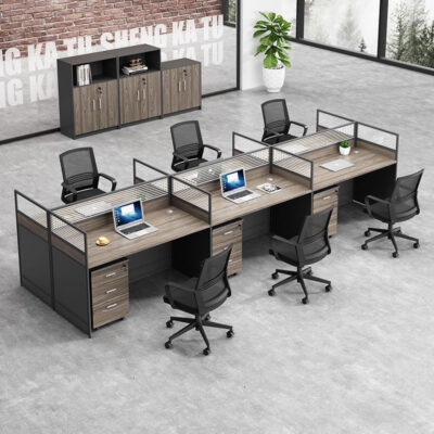 Bàn nhân viên 6 người Bàn vi tính vách ngăn công ty Bàn văn phòng 2/4/6 màn hình kết hợp ghế văn phòng