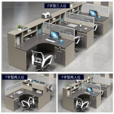 Vách ngăn kết hợp bàn tài chính và ghế kiểu chữ L bàn nhân viên nhiều người kiểu chữ F kết hợp nội thất văn phòng