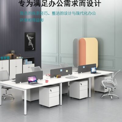 Bàn nhân viên 2/4/6 người màu trắng màn hình máy ngăn Phòng kết hợp bàn ghế văn phòng hiện đại đơn giản