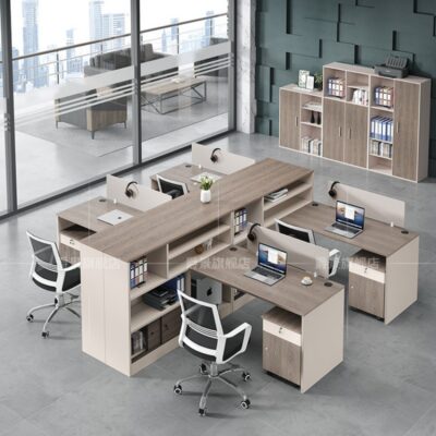 Bàn ghế nhân viên xuyên biên giới kết hợp ghế bàn máy tính nội thất văn phòng gỗ cứng bàn nhân viên màu sáng trạm