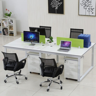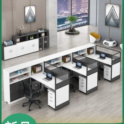 Đơn giản hiện đại màu trắng nhân viên tài chính bàn máy tính phân vùng góc màn hình bốn người bàn nhân viên bán buôn