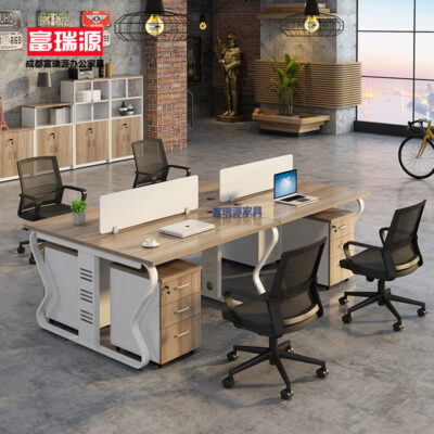 Kết hợp bàn ghế làm việc nhân viên Thành Đô đơn giản hiện đại vách ngăn màn hình ghế 2 bàn máy tính nội thất văn phòng 4 người