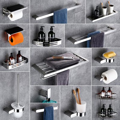 - Kệ và móc treo: Dùng để treo và cất giữ các vật dụng như khăn tắm, quần áo, v.v.