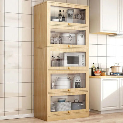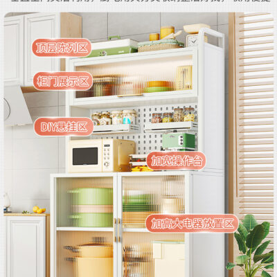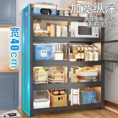 Giá bếp tủ để đồ đa chức năng cao từ trần đến sàn nhiều tầng có cửa tủ gia đình để đựng bát đĩa và tủ để đồ bộ đồ ăn
