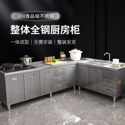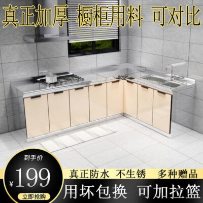 Toàn bộ tủ bếp inox 304 hộ gia đình đơn giản bếp để đồ tủ tích hợp tủ búp phê căn hộ nhỏ