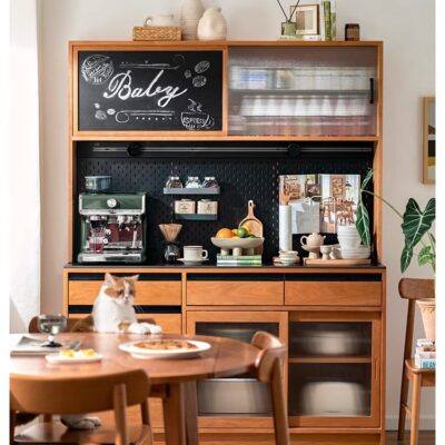 Tủ búp phê gỗ nguyên khối Bắc Âu gia đình căn hộ nhỏ cao từ trần đến sàn hoạt động bàn trà nhà hàng tủ để đồ đa chức năng kiểu Nhật