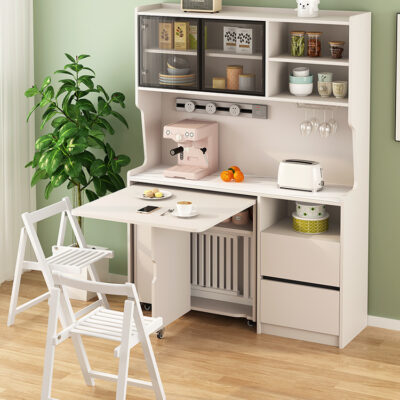 Bàn ăn gấp đơn giản sang trọng nhẹ nhàng kèm ghế ăn tủ búp phê đa năng 1 nhà ăn chung cư nhỏ sát tủ âm tường