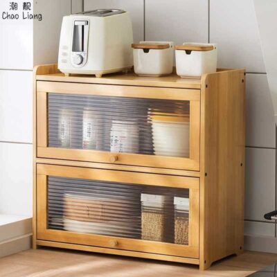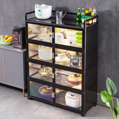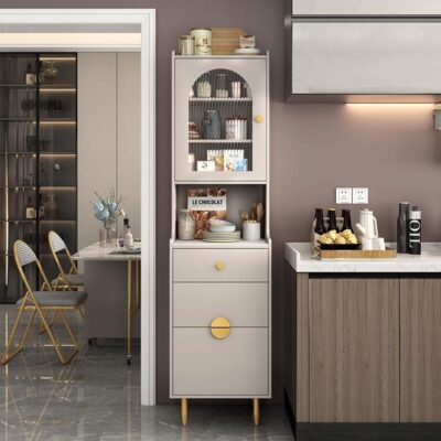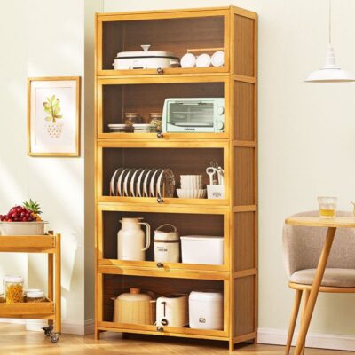 Giá bếp tủ để đồ đa chức năng cao từ trần đến sàn nhiều tầng có cửa tủ gia đình để đựng bát đĩa và tủ để đồ bộ đồ ăn