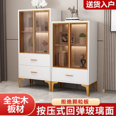 Gỗ Tủ Tủ Lạnh Sang Trọng Cửa Kính Phòng Khách Khóa Phong Cách Bắc Âu Tủ Trưng Bày Tủ Trà Bảo Quản Khóa