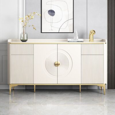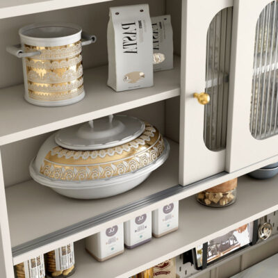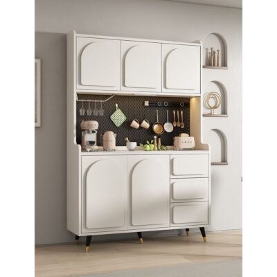 Tủ búp phê gió đá màu kem Pháp tủ đựng đồ dung tích lớn áp sát tường tích hợp tủ kho lò vi sóng tủ đồ