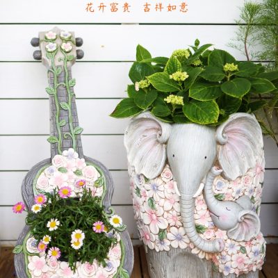 Retro động vật lọ hoa điêu khắc đồ trang trí ngoài trời bền đẹp, thân thiện m nan