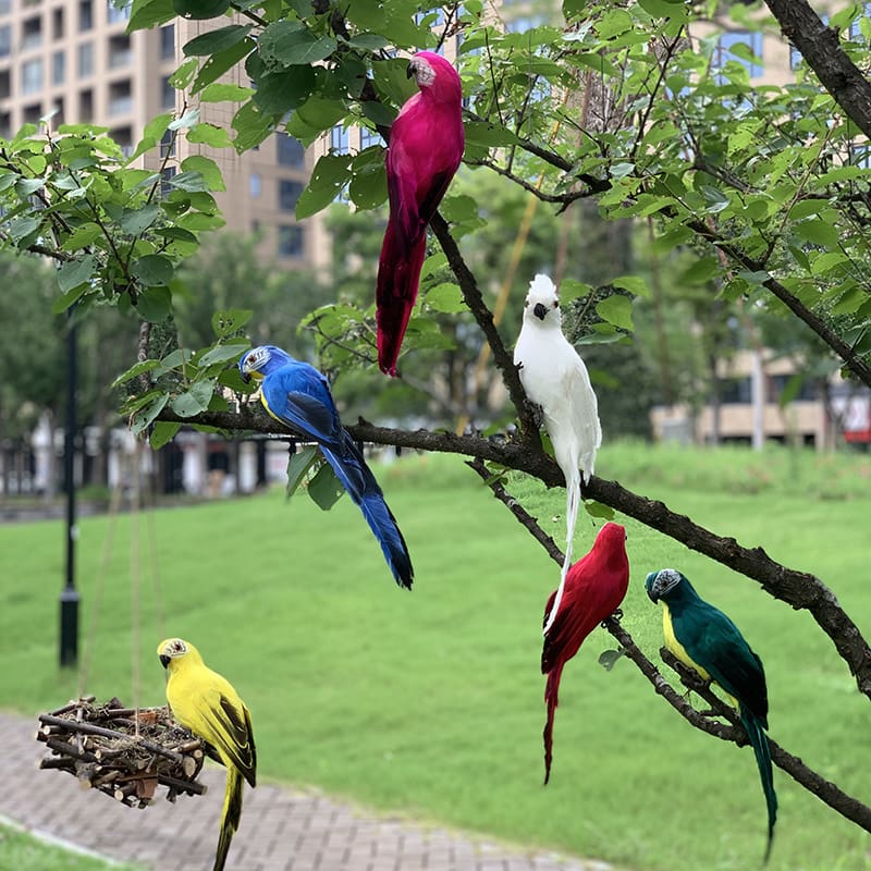 Lông chim mô phỏng, chim nhỏ, vẹt, đồ trang trí ngoài trời bền đẹp, thân thiệ nan