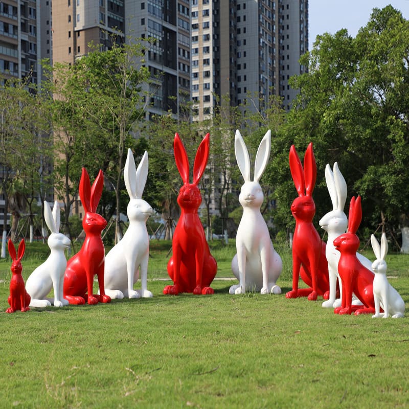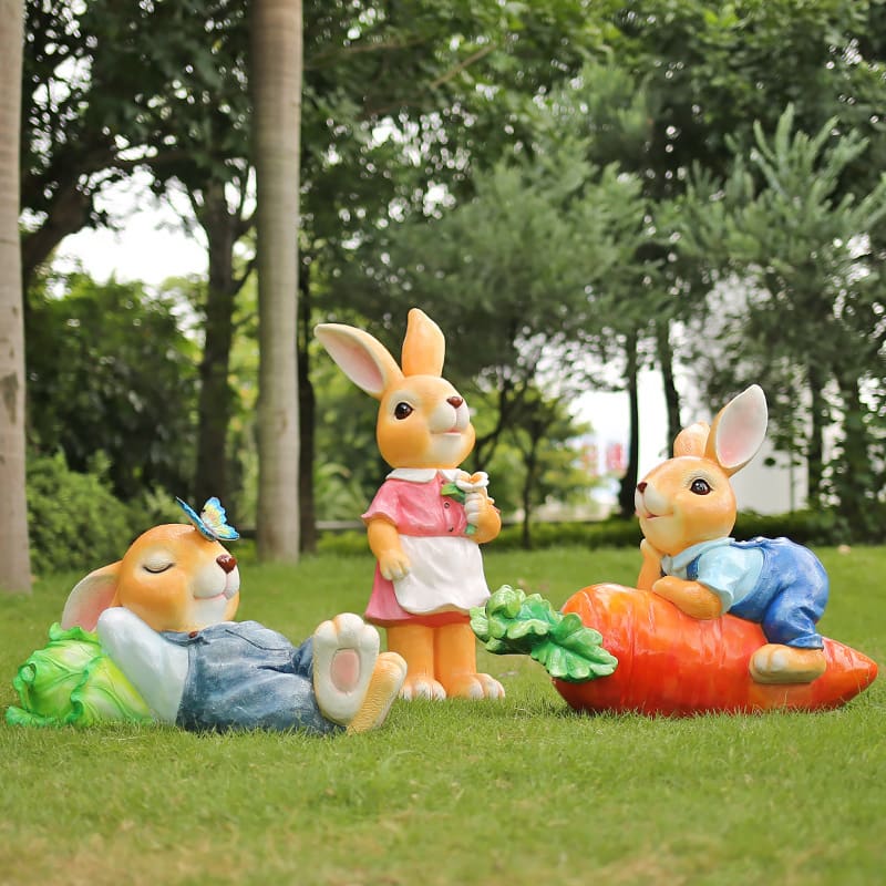 Thỏ điêu khắc đồ trang trí sợi thủy tinh búp ngoài trời bền đẹp, thân thiện m nan