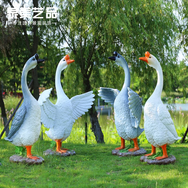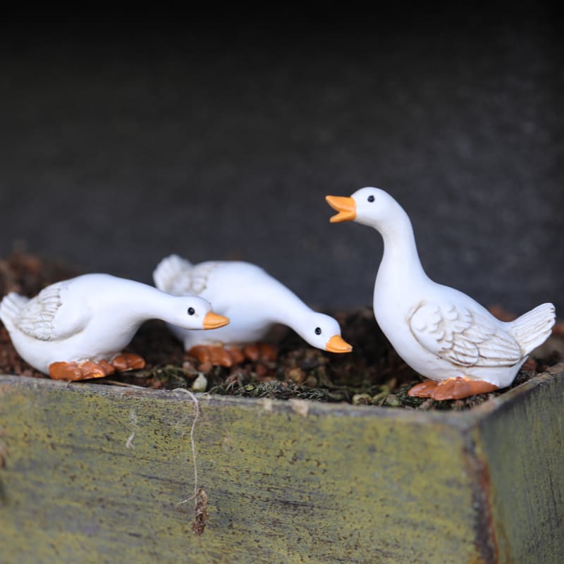 Mini vịt trắng động vật đồ trang trí sân vườn ngoài trời bền đẹp, thân thiện nan