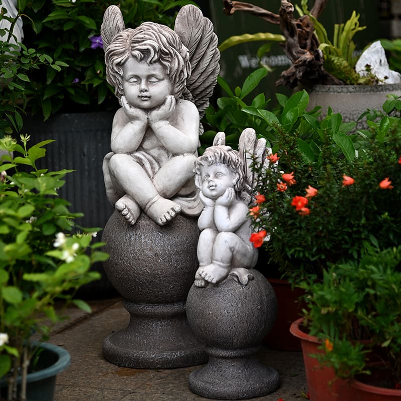 Lw96 trang trí sân vườn châu âu thiên thần đồ ngoài trời bền đẹp, thân thiện nan