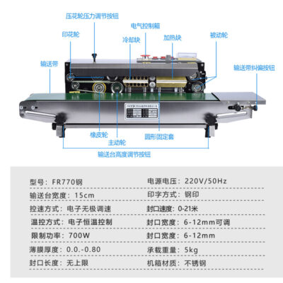 FR-1600 mã hóa và đóng thùng máy in phun thông minh tất cả trong một máy đóng thùng liên tục thương mại lá nhôm thực phẩm túi nhựa trà bánh trung thu