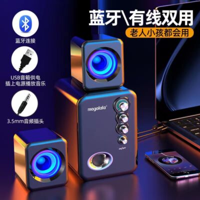 Máy tính đa phương tiện để bàn loa nhỏ có đèn nhiều màu, laptop mini độc đáo với loa nhỏ nhiều màu