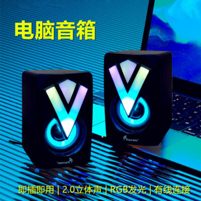 Loa máy tính phát sáng máy tính xách tay máy tính để bàn âm thanh văn phòng tại nhà Cáp USB loa nhỏ bán buôn tiếng Anh trung tính