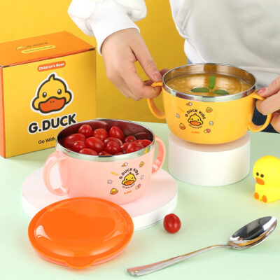 Chú Vịt Vàng Bát Ăn Trẻ Em Inox 316 Đặc Biệt Cho Bé Bộ Đồ Ăn Nhà Cho Bé Bổ Sung Bát Dụng Cụ Mới