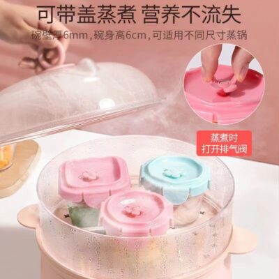 Hộp thức ăn bổ sung cho bé thủy tinh có thể hấp và bảo quản cho trẻ sơ sinh và trẻ nhỏ Bộ bát ăn dặm hấp đặc biệt chịu nhiệt độ cao dụng cụ đầy đủ