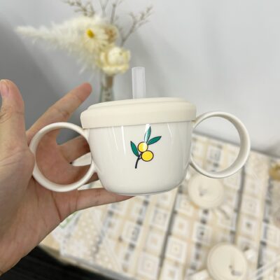 Mới Ins Cho Bé Thực Phẩm Bổ Sung Hai Tai Bát Ăn Cho Trẻ Sơ Sinh Bộ Đồ Ăn Hai Tai Bát Uống Nước Súp Nước Ăn Nhẹ Cốc