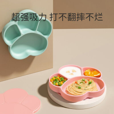 Điểm trẻ em đĩa silicon cấp thực phẩm cho bé bộ đồ ăn lớn đĩa hút thức ăn cho bé bổ sung bát