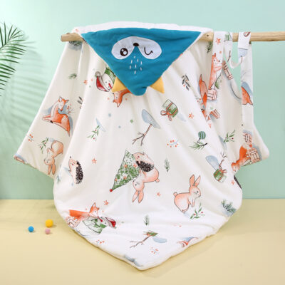 Chăn cotton 2 lớp xuyên biên giới siêu mềm xù xù khăn tắm cho bé chăn cho bé xe đẩy trẻ em bao chăn