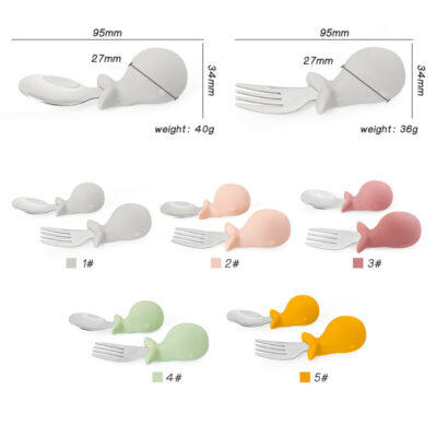 Cá Voi Thìa Silicone Đào Tạo Cho Bé Bữa Ăn Huấn Luyện Tay Cầm Ngắn Thực Phẩm Bổ Sung Thìa Thực Phẩm Cho Bé Bằng Thép Không Gỉ Cấp Thực Phẩm Bổ Sung Bộ Đồ Ăn