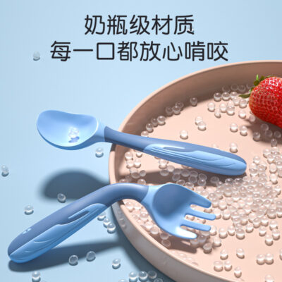 Bé tập ăn tập ăn thìa có thể uốn cong cho bé thức ăn bổ sung vặn khuỷu tay thìa nĩa bộ đồ ăn trẻ em một tuổi