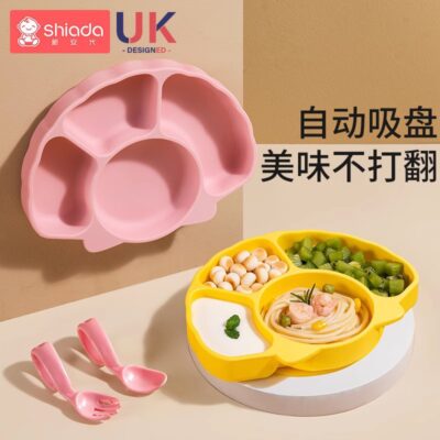 Điểm trẻ em đĩa silicon cấp thực phẩm cho bé bộ đồ ăn lớn đĩa hút thức ăn cho bé bổ sung bát