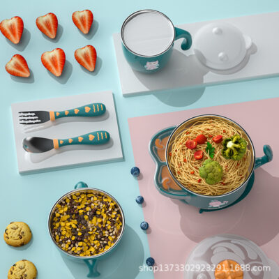 Cho bé ăn nước bổ sung bát ăn bằng thép không gỉ 316L phun nước cách nhiệt bộ đồ ăn trẻ em bộ bát ăn cho bé bộ thìa