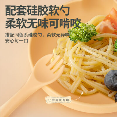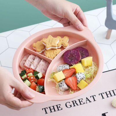 Đĩa ăn tối cho bé Bộ đồ ăn trẻ em chia lưới chống rơi cốc hút bổ sung thực phẩm muỗng nĩa silicone 2 màu Bộ đĩa ăn tối