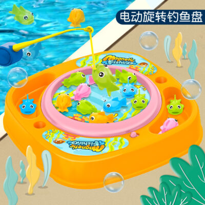 Vịt vàng nhỏ nhạc điện quay đĩa câu cá từ tính xuyên biên giới giáo dục sớm cho trẻ em nhà chơi đồ chơi giáo dục cho bé trai và bé gái