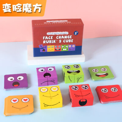 Douyin Hot Face Thay đổi khối Rubik Biểu tượng cảm xúc Khối xây dựng Giáo dục sớm cho trẻ Xếp hình Xếp hình Tương tác giữa cha mẹ và con cái Đồ chơi bằng gỗ Bán buôn