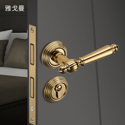 Biệt thự phong cách châu Âu sang trọng Đẹp sang trọng Khóa mạ vàng phòng phòng ngủ trong nhà cửa gỗ nguyên khối cách âm lockset gia đình tay nắm cửa bằng gỗ