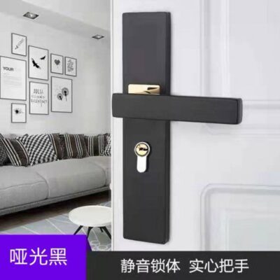 Bán buôn Lushi Jinjian đen Khóa cửa trong nhà nhỏ 50 cách âm cửa phòng ngủ tay nắm cửa phòng Khóa cửa gỗ chắc chắn