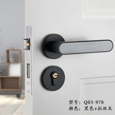Khóa cửa màu đen trong nhà Khóa cửa phòng ngủ Khóa cửa hộ gia đình hút từ tắt tiếng tay nắm cửa tối giản sinh thái Khóa cửa gỗ