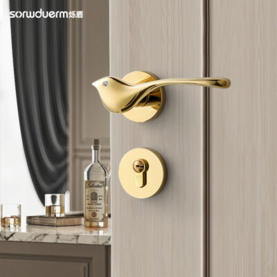 Khóa cửa chim trong nhà vàng chia Khóa cửa phòng ngủ Khóa cửa gỗ Đẹp hiện đại sang trọng cách âm hút nam châm Khóa cửa phòng