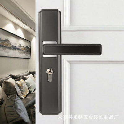 Khóa cửa Mỹ Trong Nhà Phòng Ngủ Tắt Tiếng Không Gian Đen Nhôm Chia Khóa Hộ Gia Đình Khóa cửa Gỗ Nhà Sản Xuất Bán Buôn Tay Cầm Lớn
