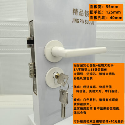 Nội Thất Màu Trắng Khóa cửa Hợp Kim Nhôm cách âm Khóa cửa Gỗ Tay Nắm Cửa Phòng Ngủ Sứ Trắng 50 cách âm Tay Cầm Cơ Khóa
