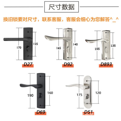 Khóa cửa trong nhà thép không gỉ phòng Khóa cửa hộ gia đình đa năng cửa phòng ngủ xử lý Khóa cửa gỗ mà không thay đổi lỗ