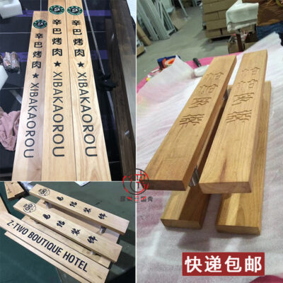 Tay cầm gỗ chắc chắn Tay nắm cửa kính Trung Quốc khắc cửa hàng khách sạn đăng nhập LOGO lớn khắc một mảnh Bán buôn